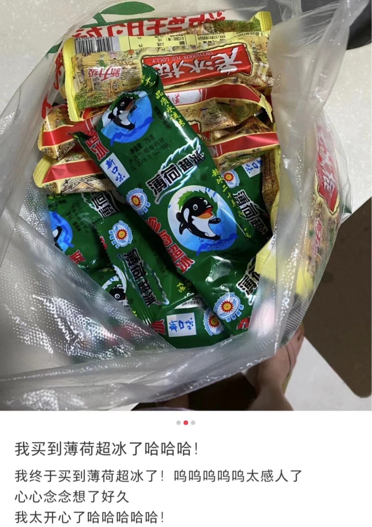 又一喜最知名的便是它的顶点雪糕,之所以叫顶点,是因为上层是牛奶,下层是红豆,而在牛奶层里还夹着一层炼乳芯,越上往上吃越好吃,好吃到了顶点。至于价格呢,依旧是1元。在某书上,甚至还有一篇帖子的题目是《多少年了又一喜的顶点都没涨价》,大家可以自行感受一下。