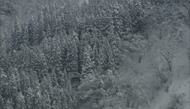 镜头切过,是飞鸟长鸣,霜雪压枝,白雪覆盖了整座村庄。