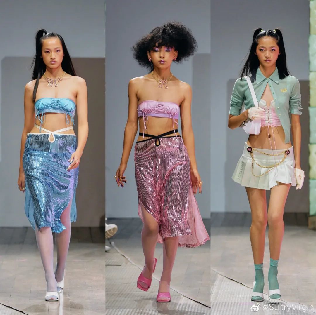 而另一边的国内时装品牌并未停下向亚文化领域前进的步伐,在今年2022SS上海时装周中,Sultry Virgin 就靠着Z时代Icon的融入在时装周中崭露头角,在品牌秀场中邀请到逵三、Bambii斑比等素人模特为其演绎品牌所倡导的Y2K美学理念。