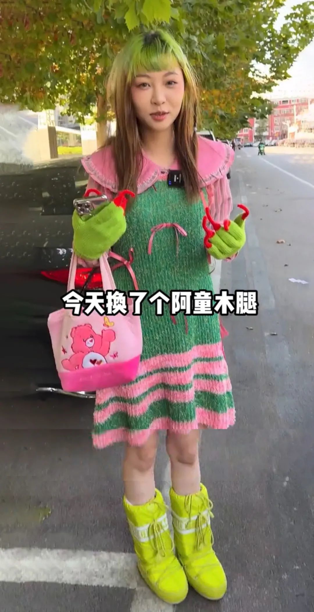 而痞幼近期的穿搭也是集Y2K美学于一身,亮丽的糖果配色、提高腰身的紧身裙、大廓形的雪地靴以及复古可爱的配饰都是Y2K辣妹常用的穿搭元素,由于色彩过于艳丽以及充满童趣的配色,痞幼近期的出圈造型也被网友戏称为”痞幼专属QQ秀穿搭“。
