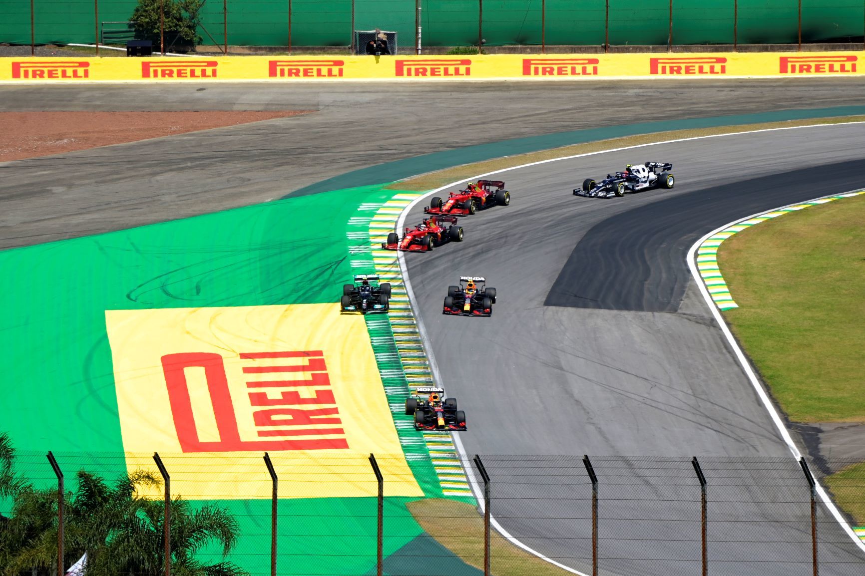 • 根据冲刺排位赛规则,正赛可自选起步轮胎,几乎所有车手都使用C3配方的P Zero中性胎起步。唯一的例外是阿尔法·图里车队的角田裕毅,他选择了P Zero红色软胎起步。红牛车队的塞尔吉奥·佩雷兹是唯一在此后正赛中使用到软胎的车手,在倒数第二圈进站换上软胎,并在最后一圈拿下了最快单圈的一个积分。