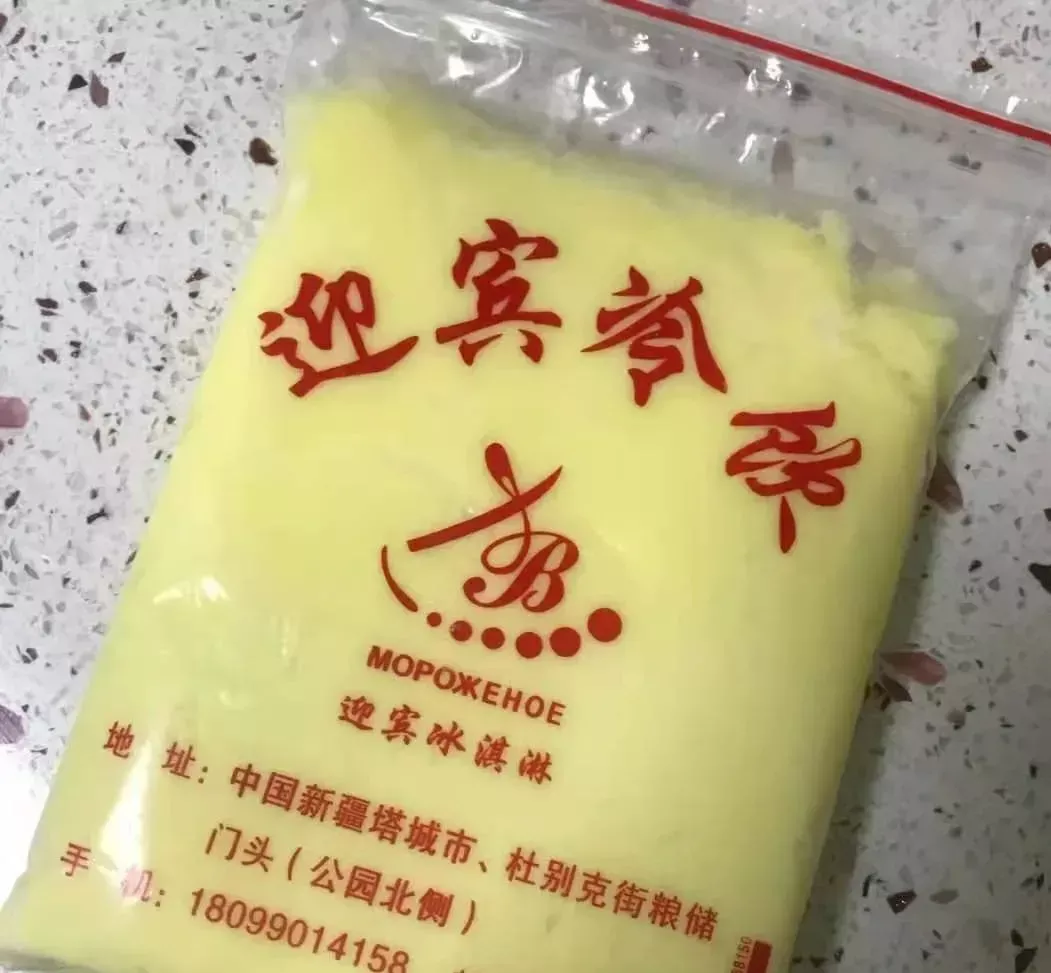 在塔城,雪糕和冰淇淋又叫玛洛什,是由牛奶和鸡蛋做的,不掺一滴水。除了街边售卖,你大可以去迎宾冷饮坐坐,尝一尝透明袋装和纸杯装的手工玛洛什。
