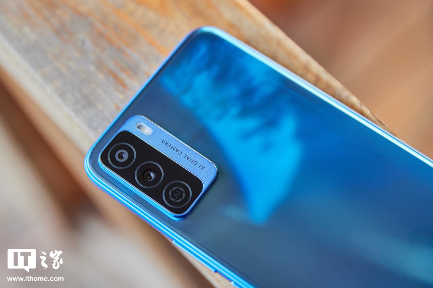 优畅享 30e 幻海蓝配色整体以淡蓝色为主,机身内还藏着一股股涌动的光线,从摄像头位置散射到机身下方,转动机身,色彩和光线也在无穷变化,给人一种沉稳可靠的感觉,可谓男女老少的通吃。