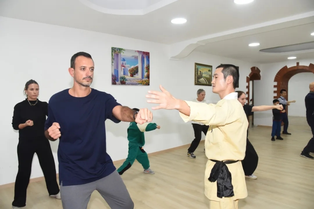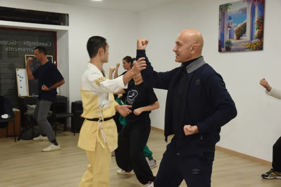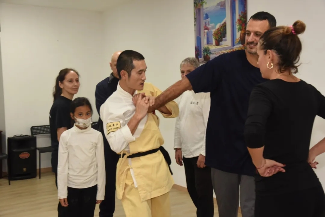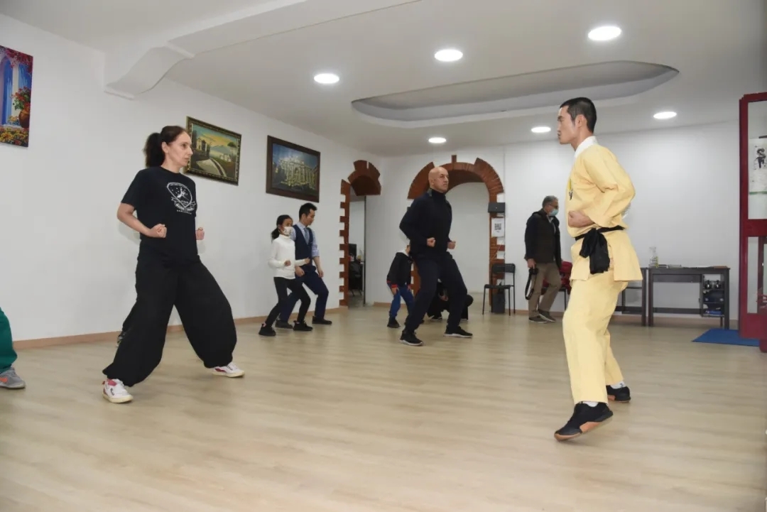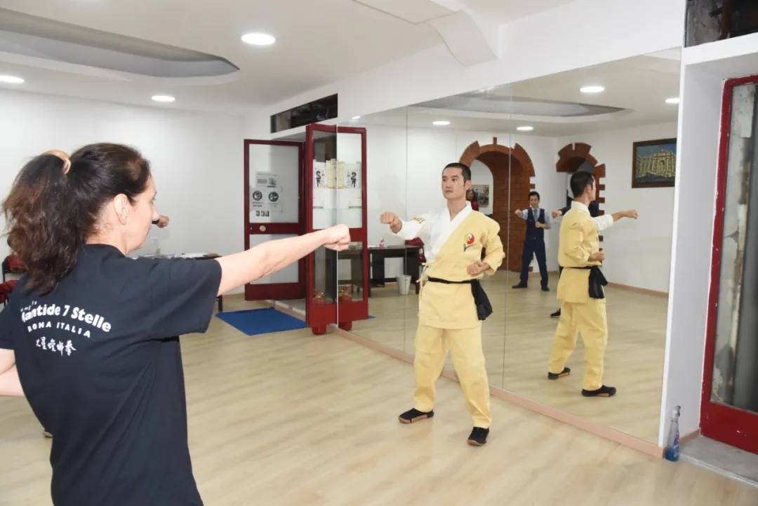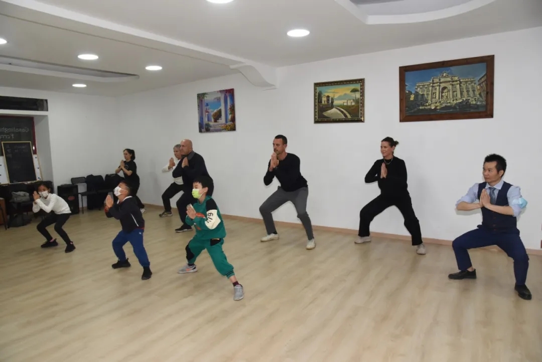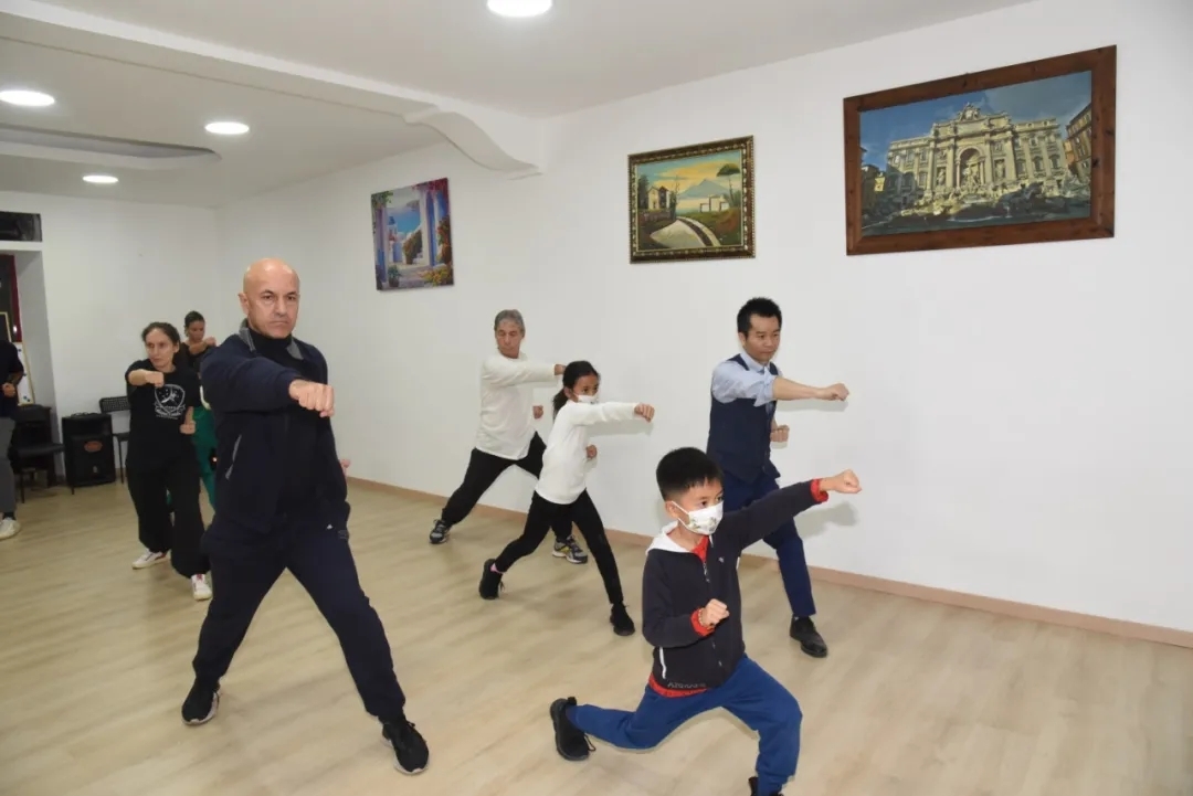 当天在罗马中国文化中心课堂上,刘鹏师傅从武术摆拳、撩拳、穿掌等基本动作的演示,从手型、手法、步法、腿法开始,一招一式都十分讲究。而当天来学习的武术爱好者,从一点点模仿开始,慢慢的领悟武术的精髓。