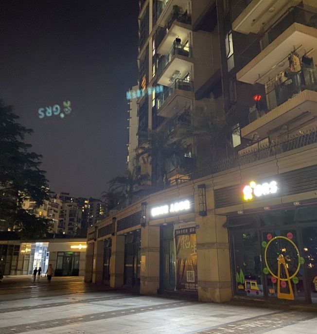 比如上图天空中的绿色文字,就是灯牌的投影