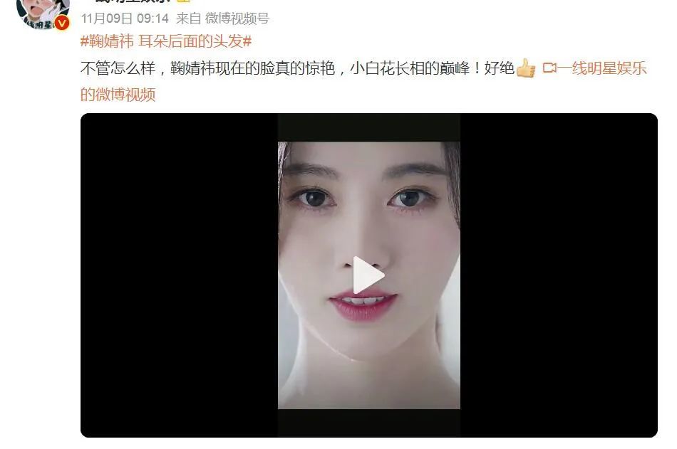 她的自拍,妆容,野生眉,再细化到泫然欲泣小表情;所有取自鞠婧祎外型的部分,令爱她的人和厌她的人拧成了一类人,都恨不得把她的干细胞摘出来研究。