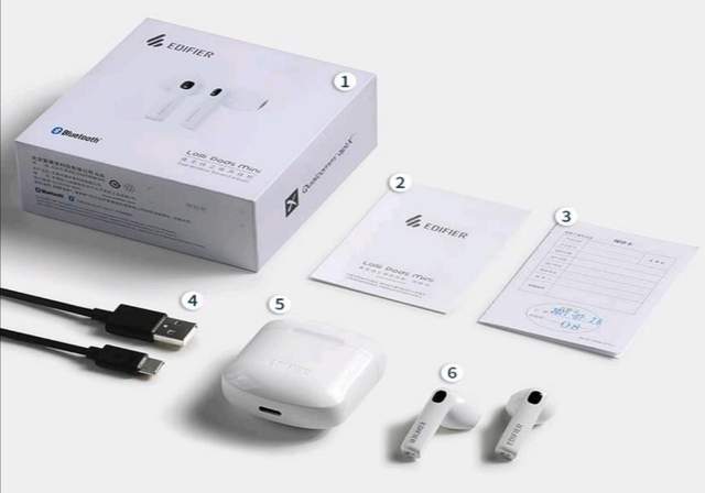 漫步者这次出的蓝牙耳机一共有两款,一款是黑的,一款是白的,我入手的是白色款,比较简约还百搭。到货后便迫不及待地打开了包裹,除了耳机、说明书、保修卡外,还送了一根Type-C的数据线,不过是黑色的。