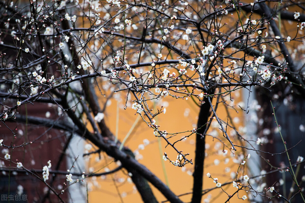 银絮漫天中的古寺,黄墙青瓦白雪,暗香沉浮间,昔日烟云仿佛又浮现。