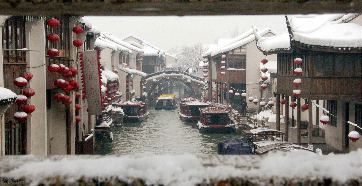 一场大雪过后,粉墙、黛瓦、白雪、黑水,还原了一个千年姑苏。