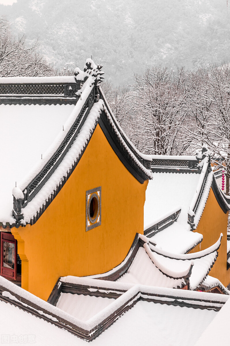 大雪尘封万物,而千年古刹的悠扬钟声与阵阵梅香,却在雪中飘散开来。