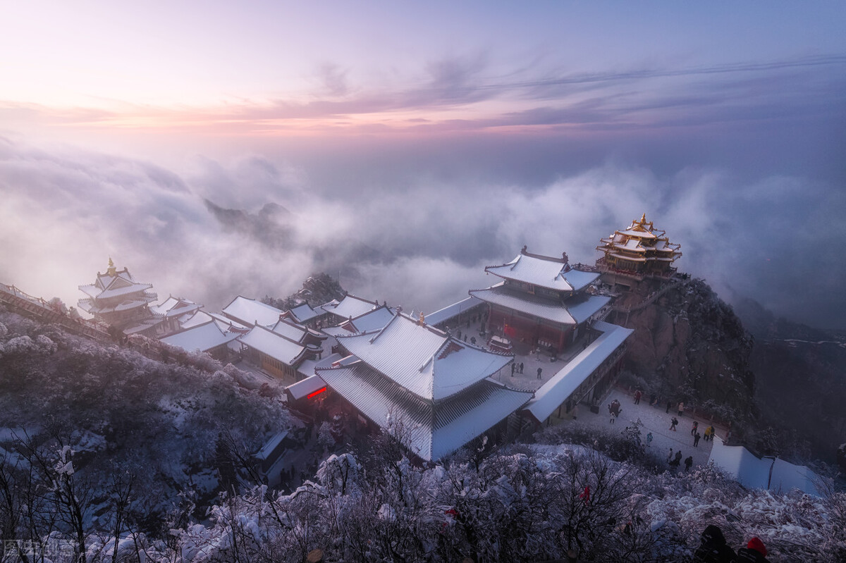 一下雪,老君山就迫不及待让人间一睹盛世颜,这里的雪仿佛要比别处下得认真,八百里牛伏山尽皆变白,人在其中,犹入太虚幻境。