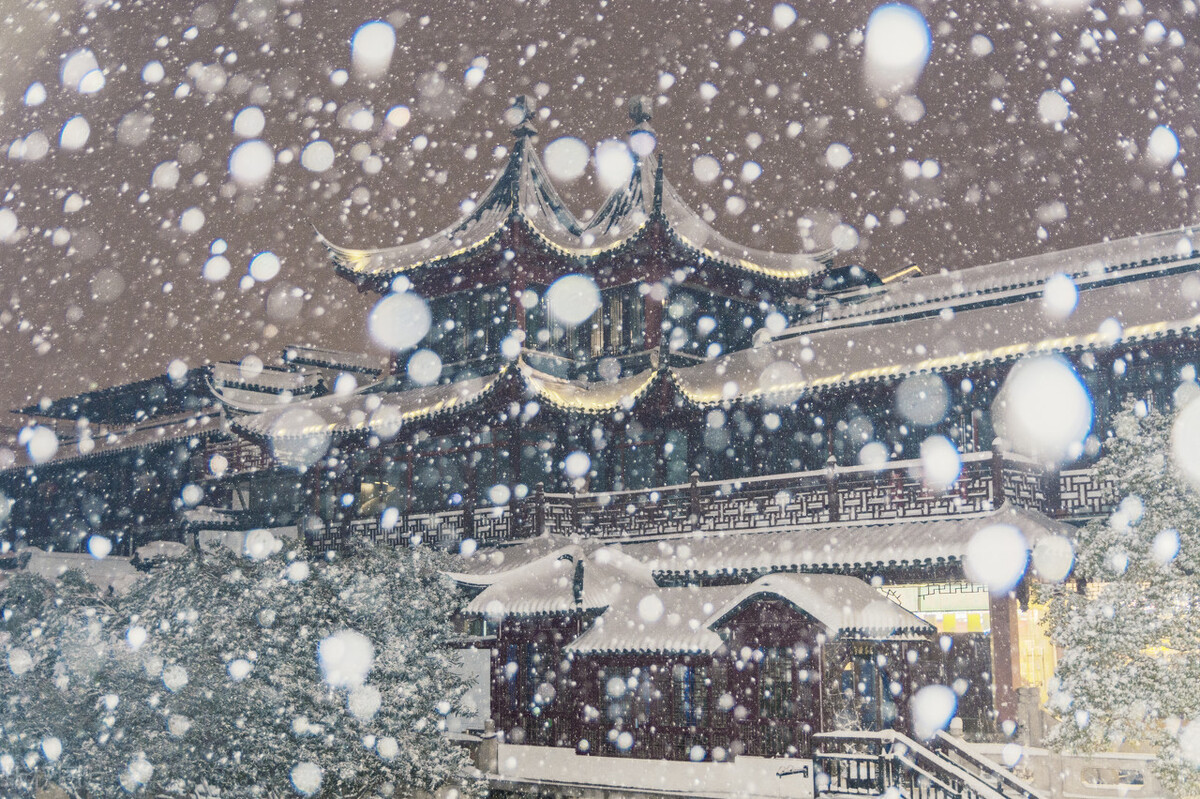 一下雪,过往和此刻仿佛在银装素裹中撕扯、交汇,耳边倏忽传来千年建筑在时光中的喁喁私语,那是唯有中国人才懂得的大美。