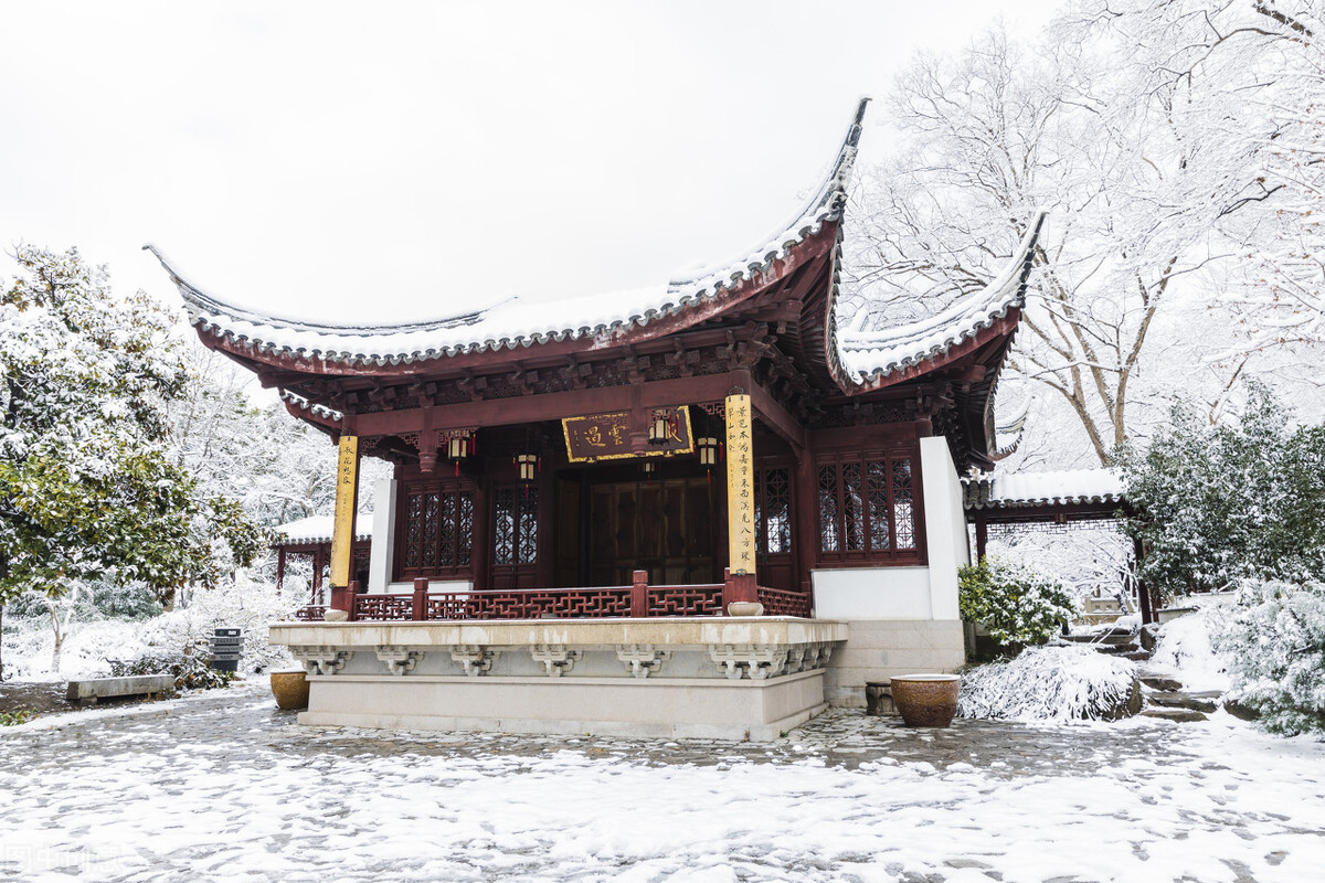 站在园林的廊下,看雪纷纷扬扬落下,时光仿佛被谱成了一首首诗歌。