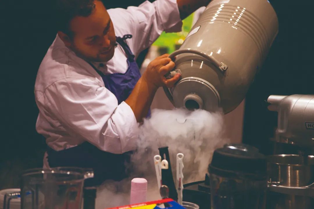 厨师在倾倒液氮