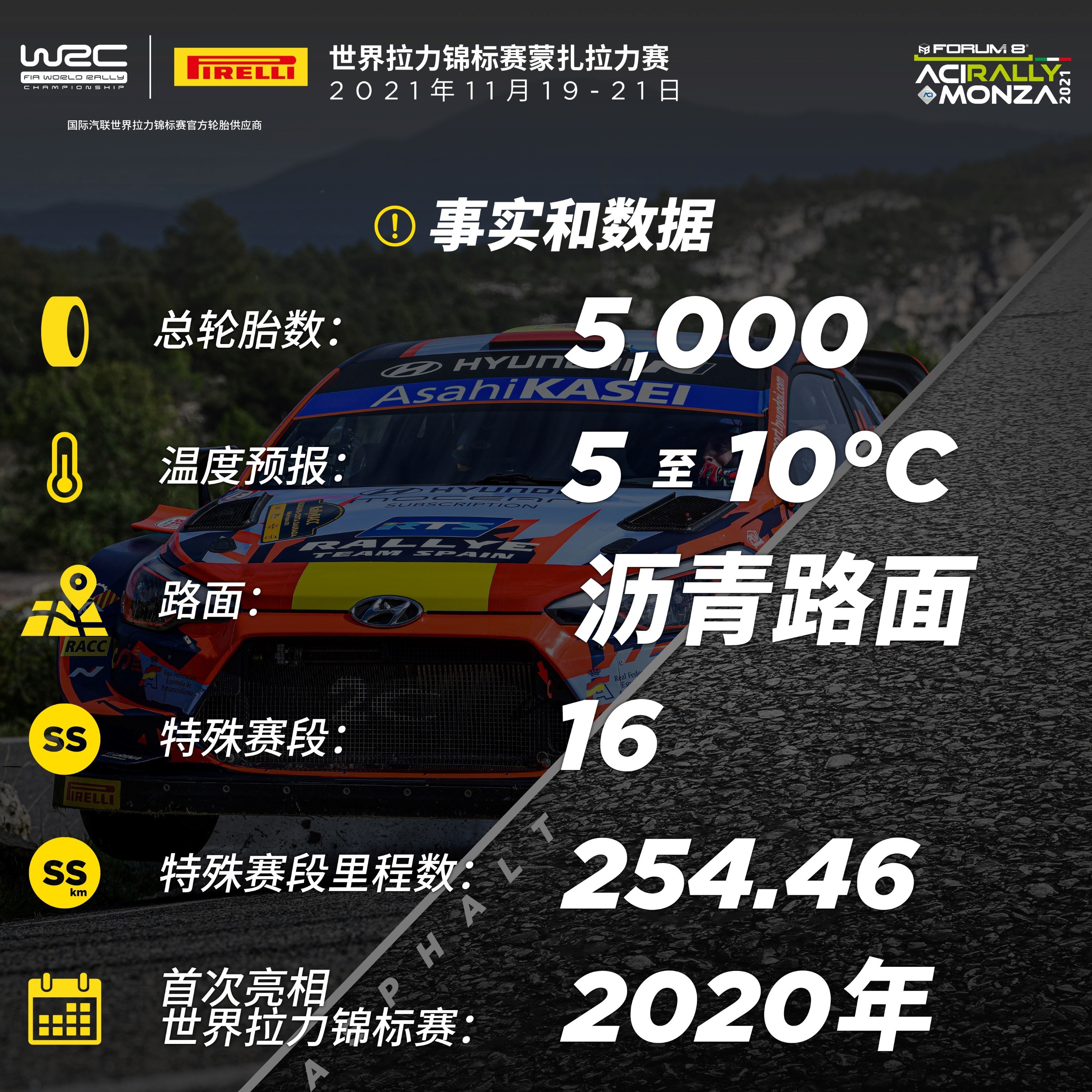 倍耐力回归作为国际汽联世界拉力锦标赛(WRC)顶级组别轮胎供应商的首个赛季,将在著名的蒙扎赛道迎来赛季收官。这条赛道紧邻倍耐力位于米兰的总部,而年度车手冠军和年度制造商冠军都将在这里决出。蒙扎拉力赛,赛段设置环绕着“速度殿堂”本身和附近阿尔卑斯山脉贝尔加莫山脚下的山路,倍耐力将为车手们提供多样的轮胎选择,以应对各种可能的比赛条件。