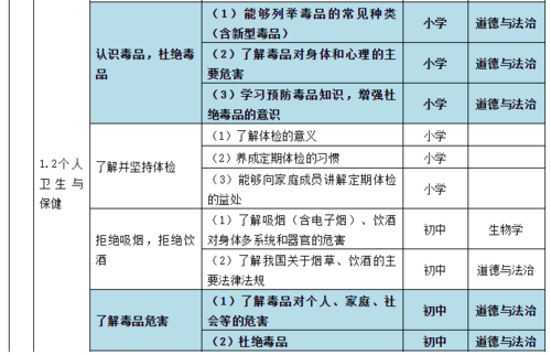 了解毒品才能更好的拒绝毒品。指南中指出小学阶段要求引导学生树立珍爱生命的意识,同时学会自我保护。初中阶段则要引导学生会分析和评估影响健康的因素,积极实践有利于健康的生活方式以及行为。拒绝吸烟、饮酒、使用毒品等危害身体健康的行为。高中阶段则要引导学生深入了解烟草、酒精和毒品危害身体健康的机制,营造无言环境,远离酒精和毒品(含新型毒品)。