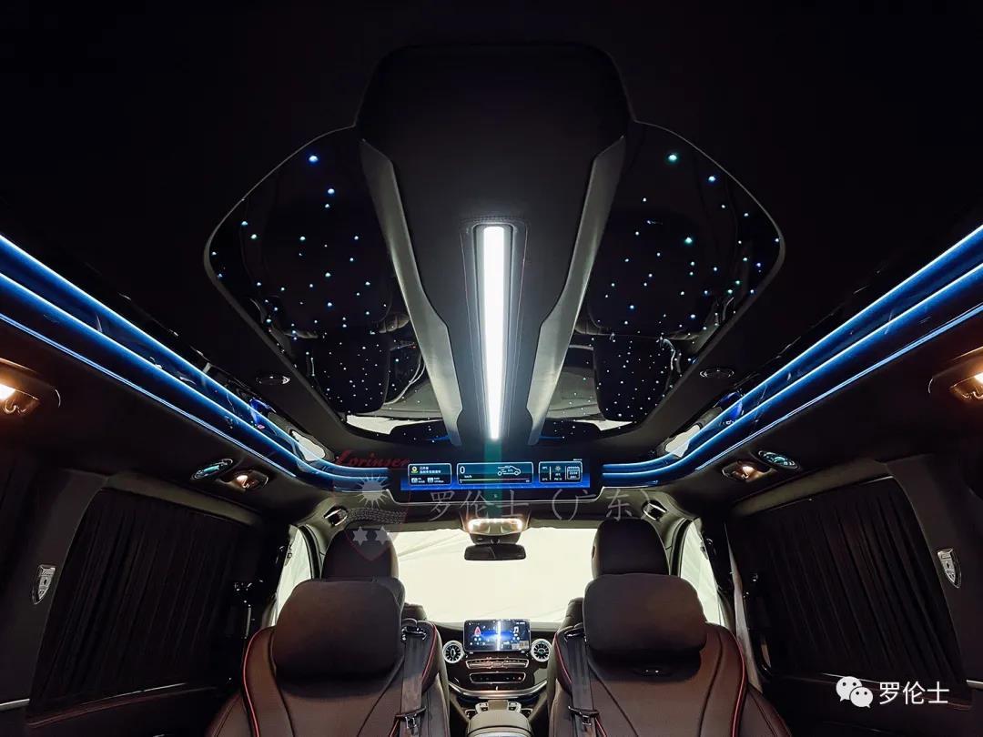 车内顶部:双层车顶设计,原车外顶+星空之夜内顶,有效降低车顶外部的风噪,阻断了车内外的热量交换,乘车环境更宜人;