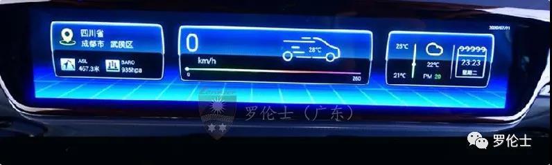 动态环境显示系统:就是当我们车在任何地方,后舱显示屏上会自动更新数据,提示乘客当前所在位置,海拔高更新、当前车速、当前的温度以及空气质量,在车内就 可以了解到外部环境信息。