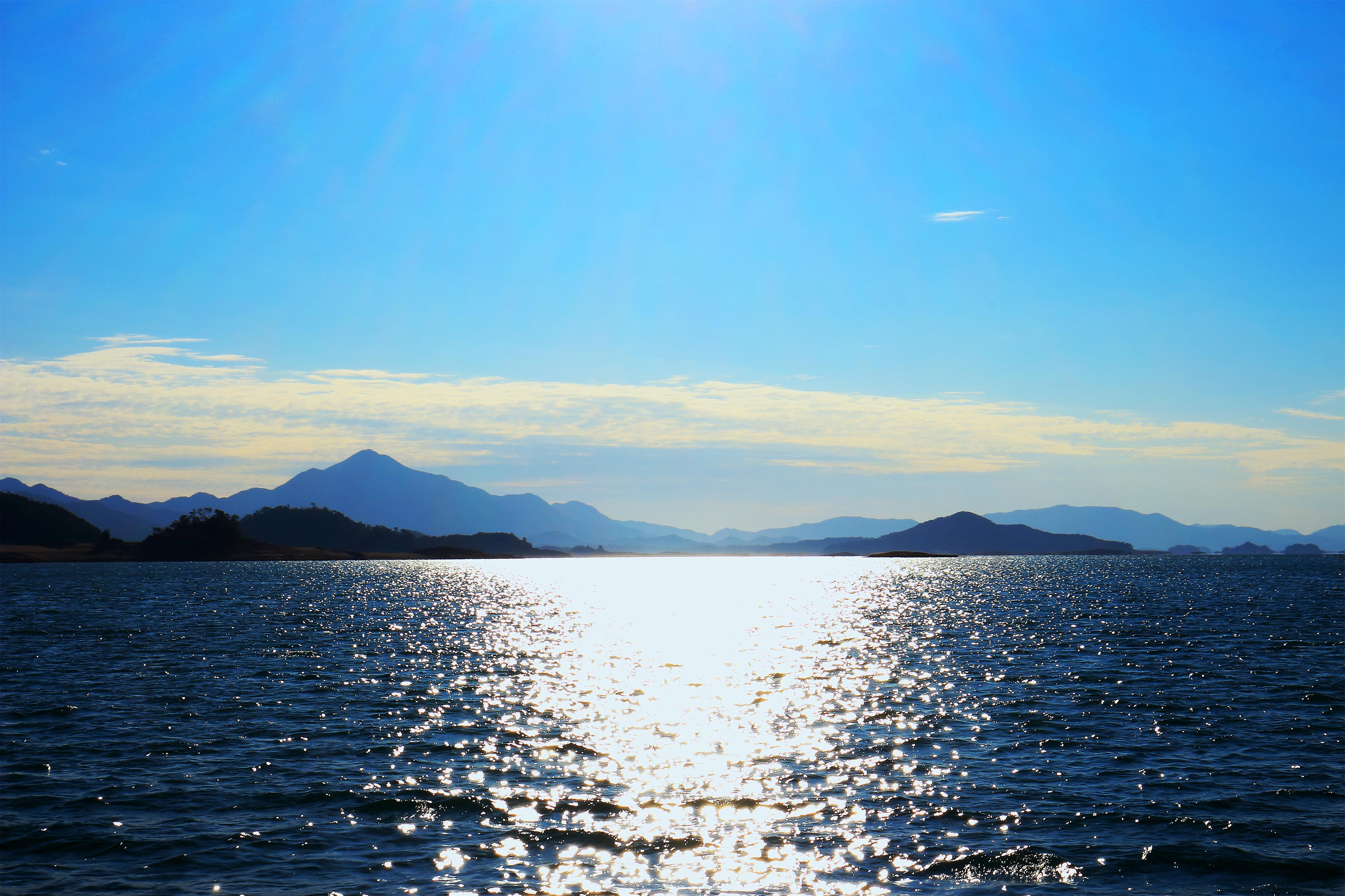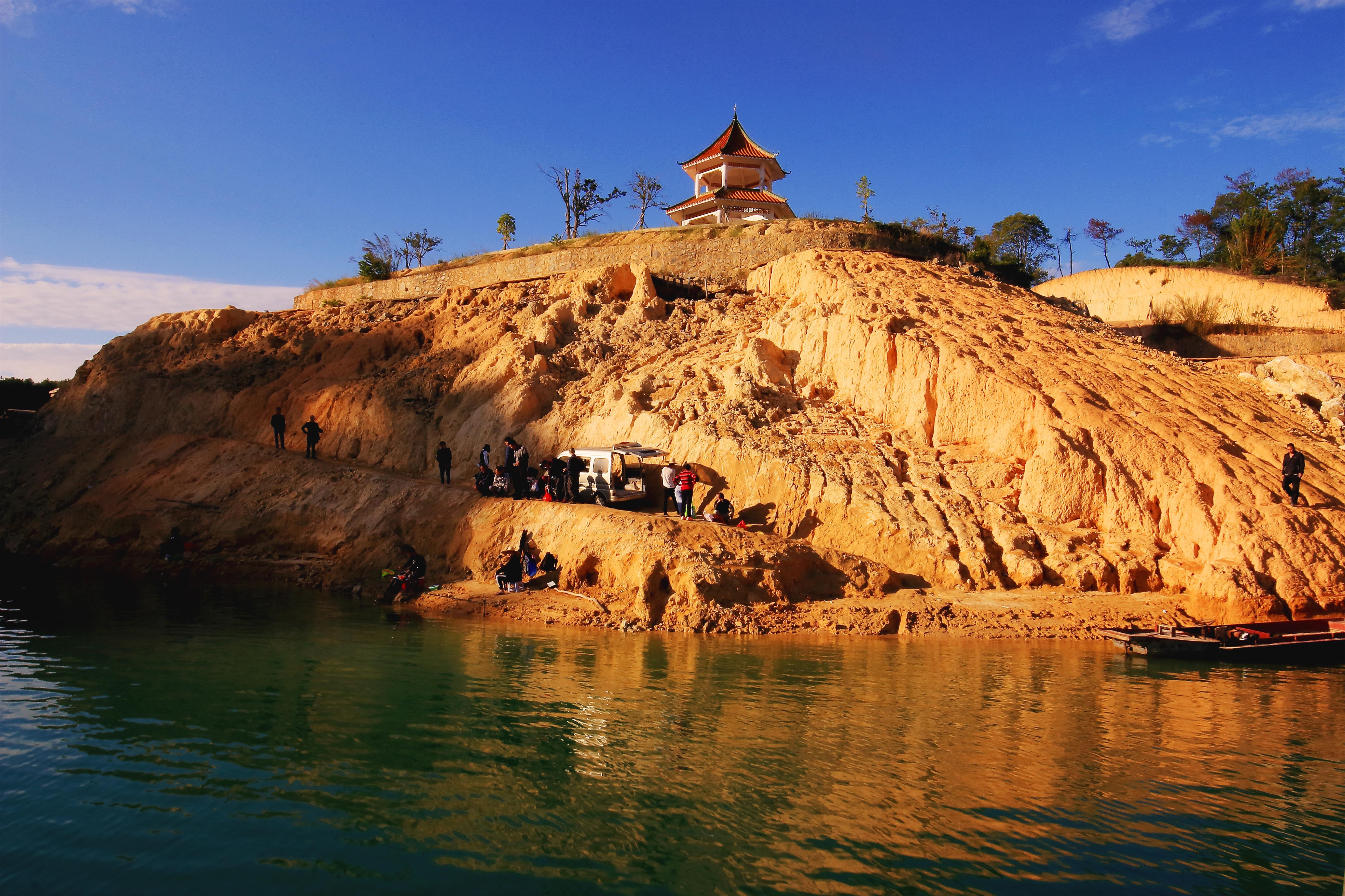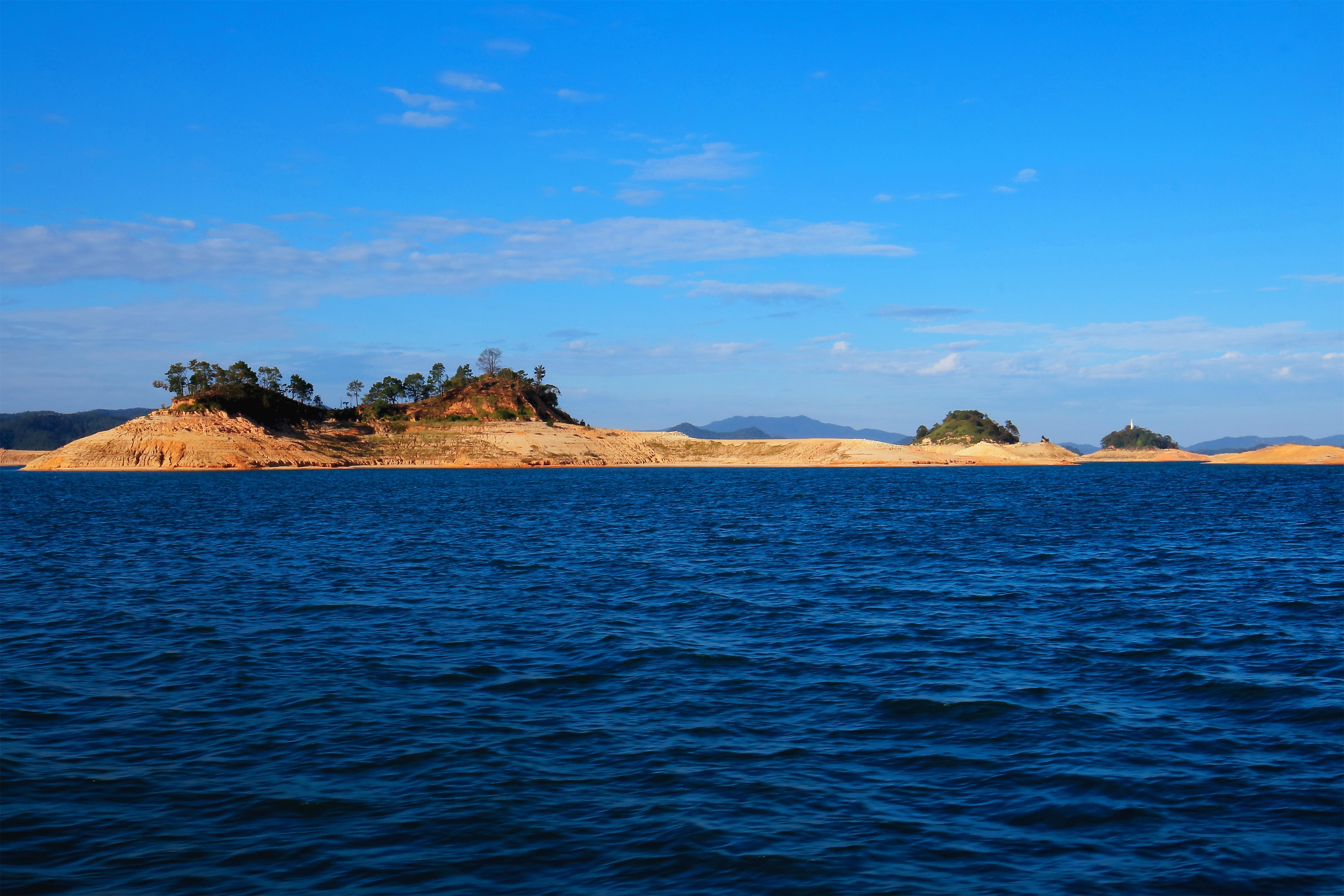 万绿湖,是1958年建新丰江水库,华南地区最大的湖泊旅游名胜之地,四季皆绿而得此名。距广东省河源市区仅6公里的新丰江下游筑拦河大坝蓄水而成的。冬季是万绿湖枯水期,它裸露出红色泥土与岩石碎片,在阳光下明媚羞红。