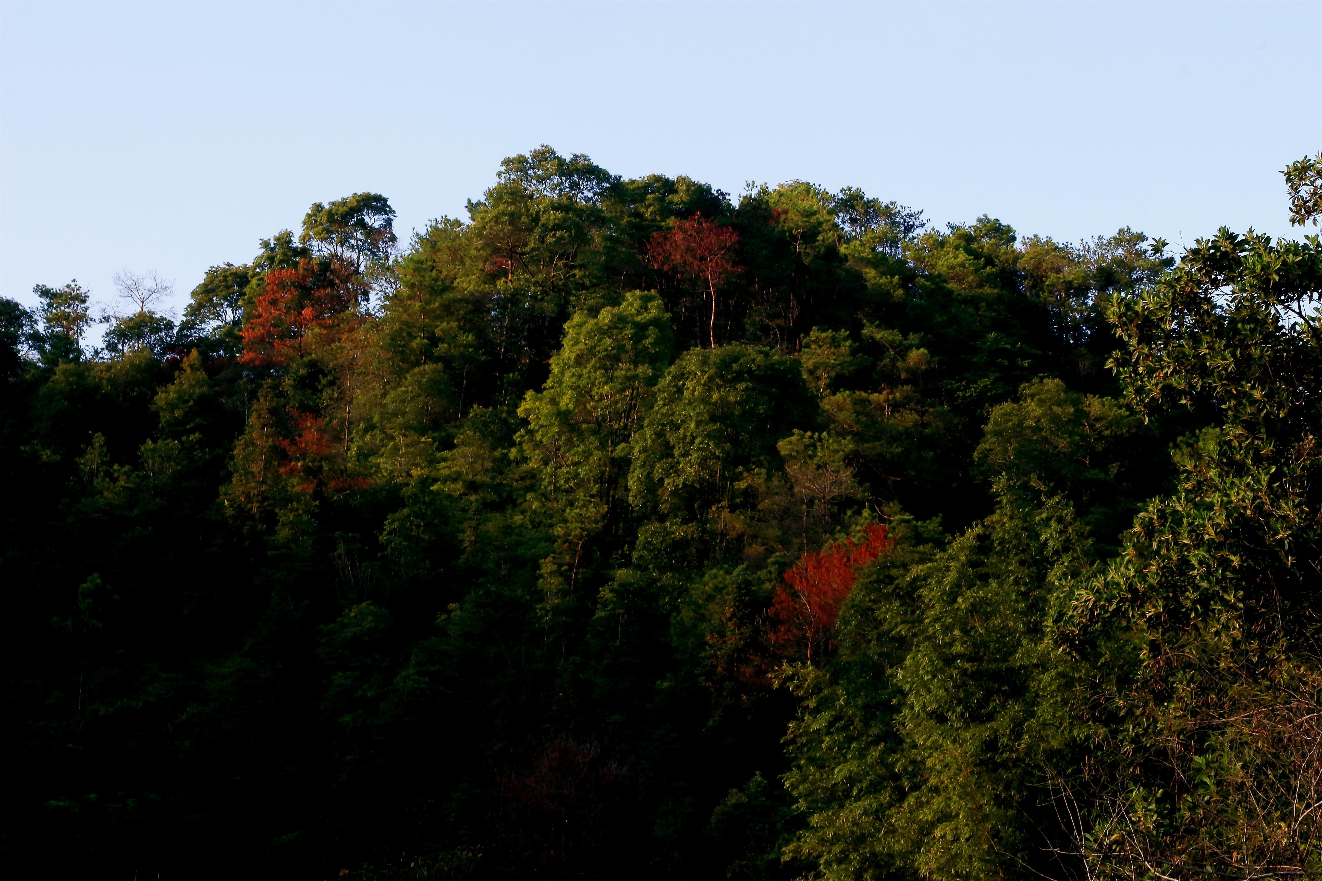 10.00到达横坑村Y880路道口交界点,山色层林尽染,遍山色变,绿、红、金黄,多姿多彩色带织成一条绚丽围巾,缠绕在万绿湖周围向人们炫耀着说:嘿!谁说我们广东没有秋色风光,你来看下我们的万绿湖,山水交映的秋冬之交景致。