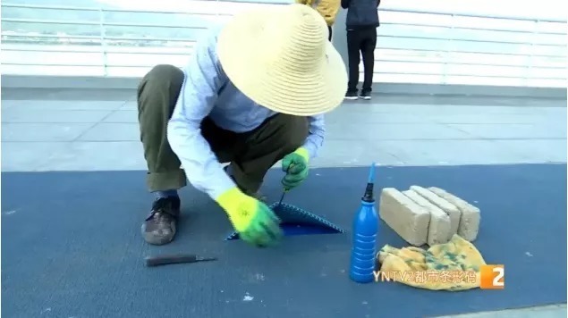 “我们补完胶以后,打完钉,把砖压上,等十个小时再把砖撤了,就整理好了。”维修工人说道。