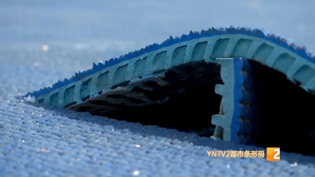 市民姚先生说:“它这个切口很整齐,不会是自己炸开的,可能是有人用刀把它划开的,我粗略地数了一下大概有二三十处,划得最长的可能有30厘米,你看这个塑胶步道使用刚刚一个月的时间,就出现了这样的情况,很不应该了。”