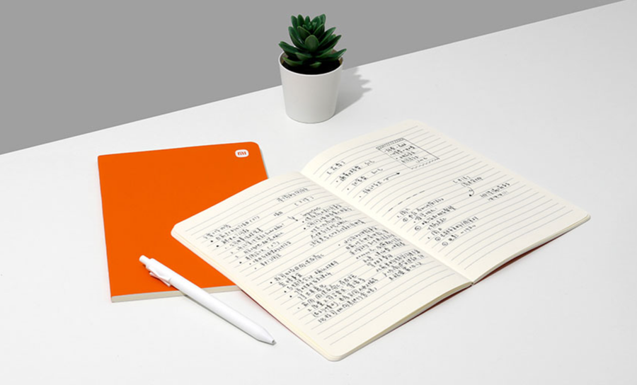 小米定制办公套装包含8支字母中性笔、一本笔记本A5、2本便利贴。