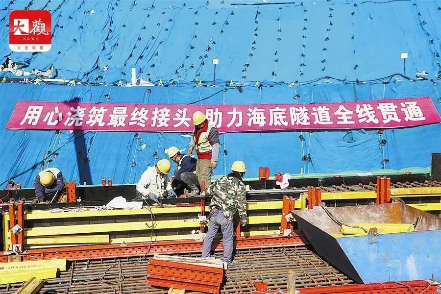 日前,大连湾海底隧道最终接头施工全部完成!标志着海上沉管段与陆上现浇段的对接结构顶推试验可以启动。大连湾海底隧道南岸隧道管节已经初具模样,犹如一条巨龙从高楼耸立、现代时尚的城市“穿城入海”。