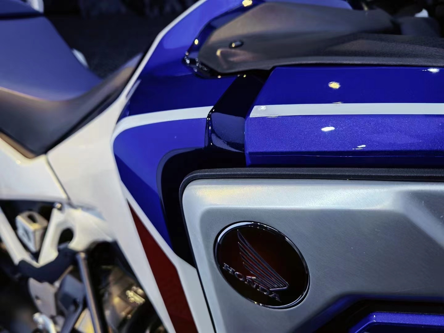 从外观上看,也很容易看出来这辆本田双非,不仅适合在一般道路上骑行,也适合带着它去冒险挑战。CRF1100L Africa Twin的外形显得十分精简,富有攻击力,让喜欢运动的人们,第一眼就喜欢上。一对造型犀利的大灯,搭配在这辆本田双非的“眼睛”位置!为了满足车主可能会去的冒险征途,设计师对这辆车进行了强化,车身结构的强度达到了很高的等级。此外,车身材料的选择从铁改为铝合金,让整台车减少了几千克重量,达到轻量化目标。整辆车的排气管尾段看起来并不长,不过和这辆车的整体感觉更搭配了。