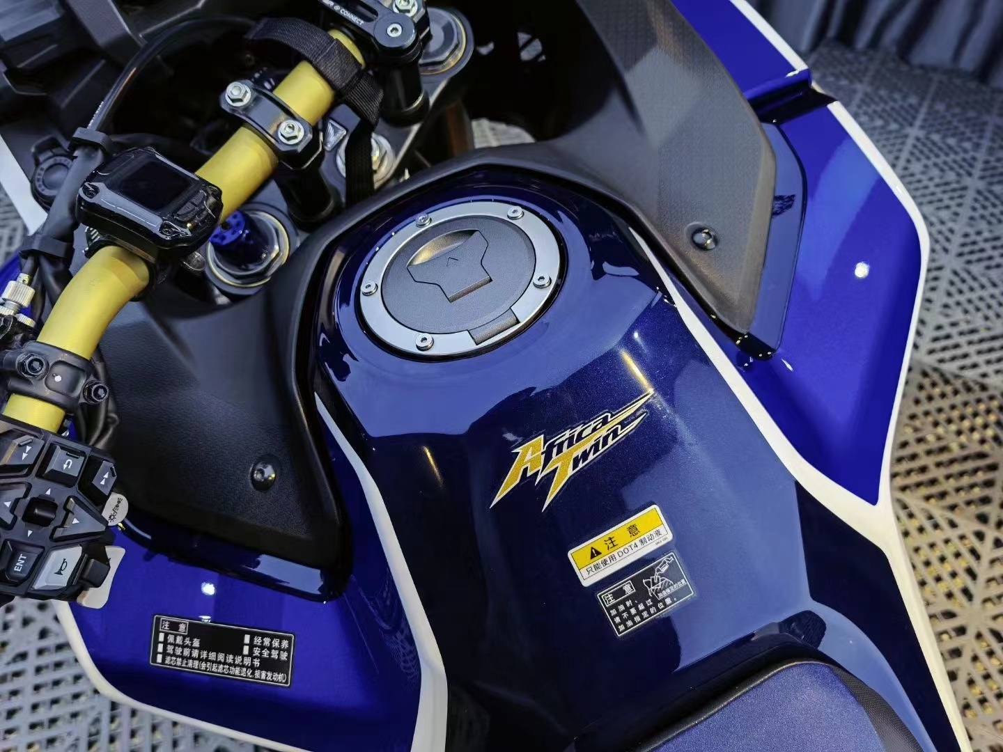 这款车采用了6.5寸全彩仪表板,屏幕的显示效果十分出众,而且可以显示的效果十分丰富。比如骑手可以根据骑乘模式,设定自己想要的显示内容。这块屏采用了被称为MID的触控功能,还可以和手机互联,只要使用蓝牙连上,就可以调整声音设定、设定导航以及拨打电话。