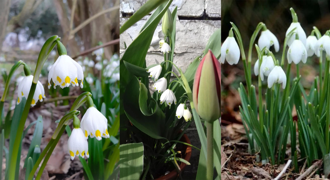 上面分别是雪片莲(左)、夏雪片莲(中)和雪滴花(右)
