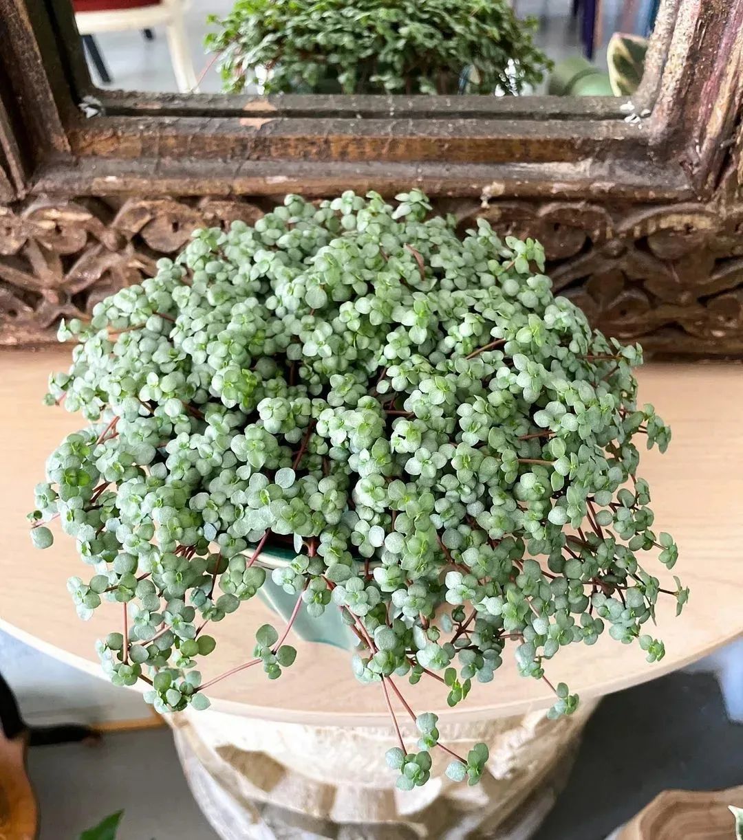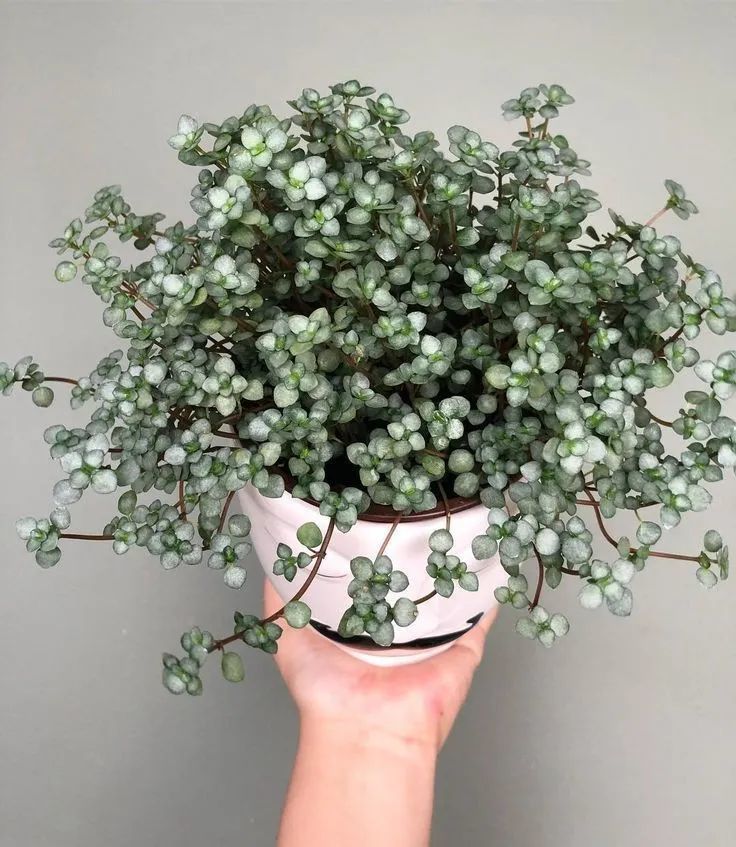 除了花叶冷水花(Pilea cadierei),还有更适合养在室内窗台或阳台上的冷水花属植物,它就是灰绿冷水花(Pilea glaucophylla),它适合养成吊盆植物,比较耐阴,如果有适当散射光,它的叶子看起来会更有仙气。