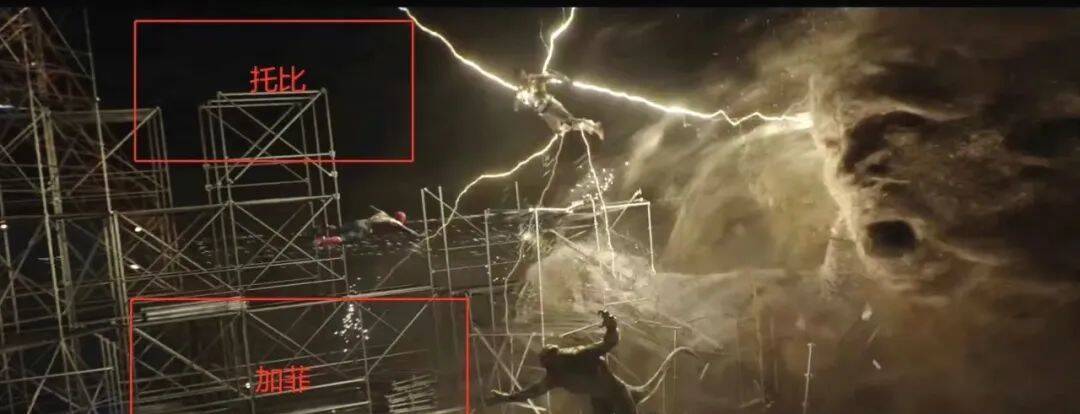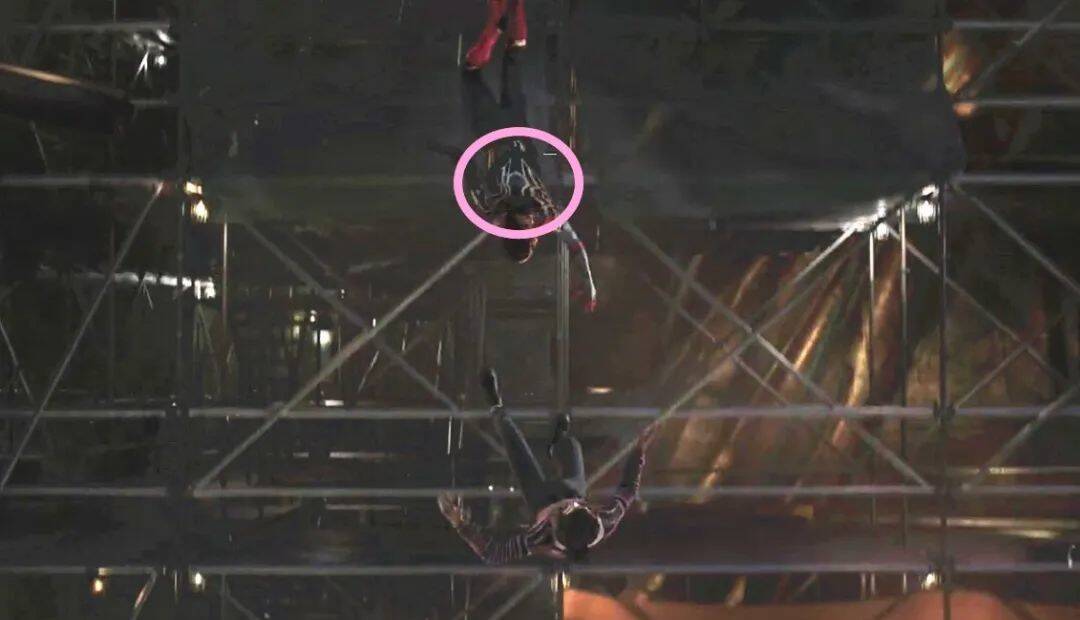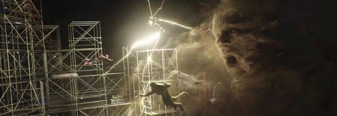 在预告片中,有一个镜头是蜘蛛侠和电光人、沙人、蜥蜴教授对打,这个场景里有搭建的铁架子,这和之前疑似泄露的三代蜘蛛侠同框照的拍摄场景对上了,那张照片里的场景也是铁架子。