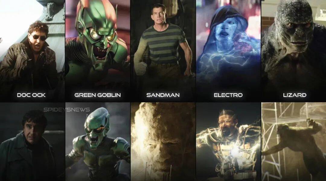 但最新的预告片里,还是有粉丝非常想看的内容——前两代蜘蛛侠的5大对手全部上线曝光,包括章鱼博士、绿魔、沙人、电光人、蜥蜴教授五大反派,还用说得再明显一点吗?