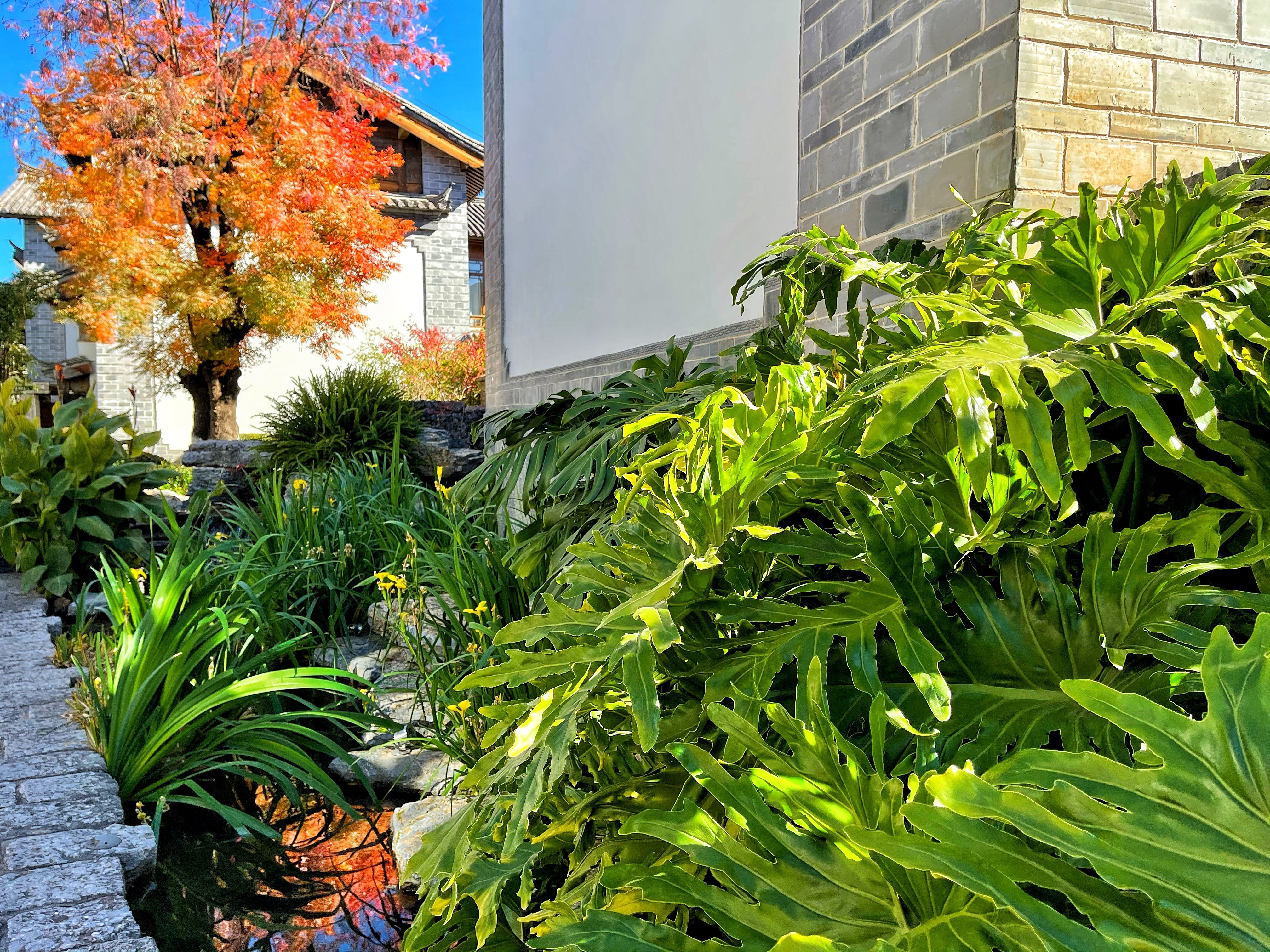 漫步丽江古城,水的流向就是向导。和热情的当地人聊天,纳西居民称呼“巷子”为“过洛”。清碧的流水会带你进入深深的“过洛”和古朴雅致的庭院,在悠扬的葫芦丝乐声中,渐渐置身于画中。水流的方向还会把你带回起点,让你身在古建筑迷宫中却也不会迷路。