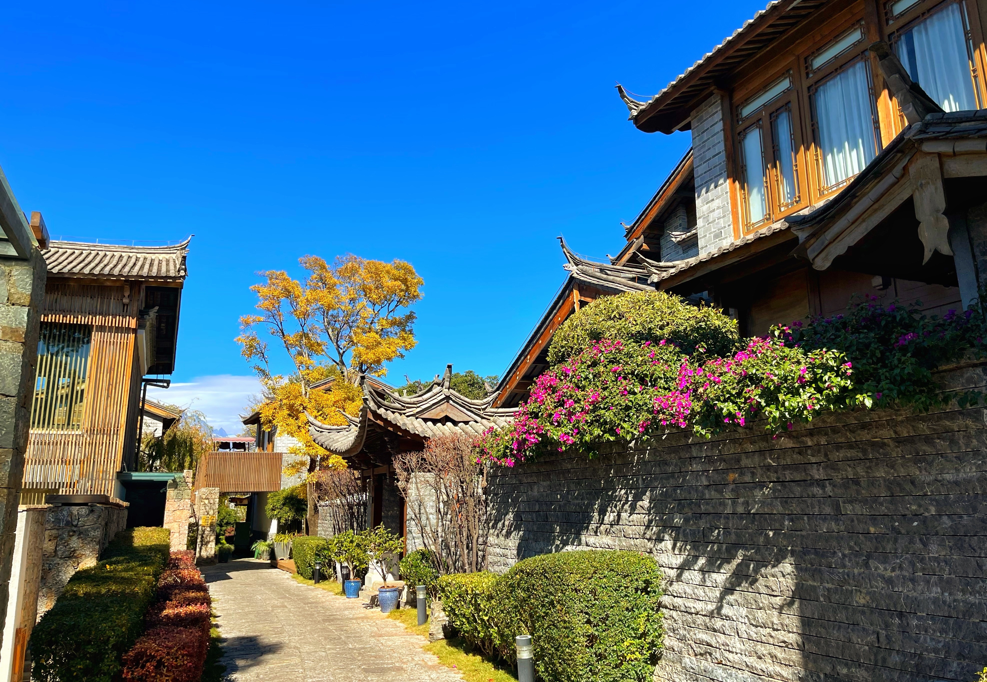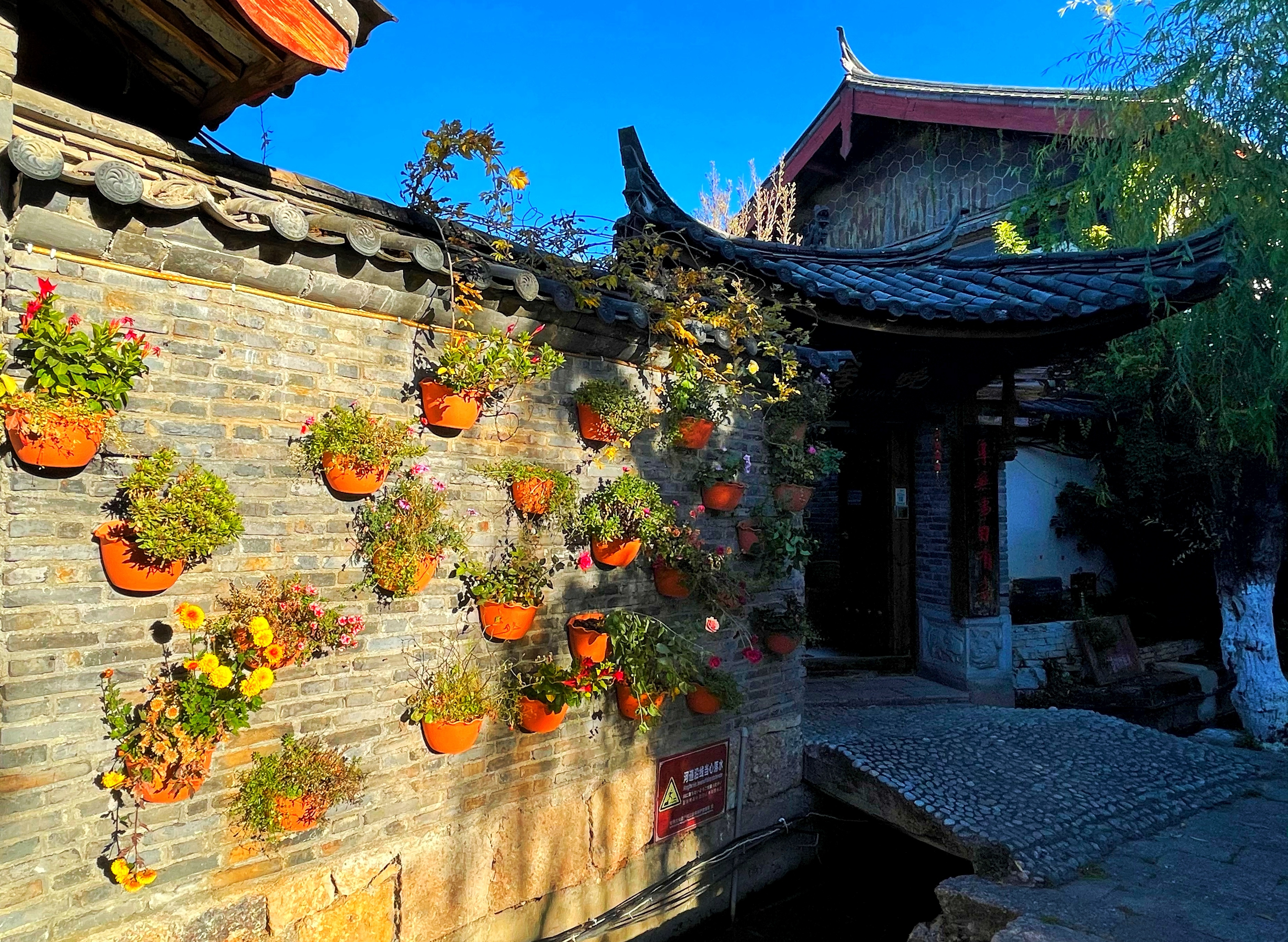 怀着悠闲的心情,跟着自己的感觉,信步走进丽江古城,便置身在了古建筑画卷、古文明的大观园之中。走上光硬的五花石板街道,不像平日里茶马古道的赶马过客沸沸扬扬,这个把茶文化带到山外的小世界在冬季没有比肩接踵、人声鼎沸,心情便更加舒畅。