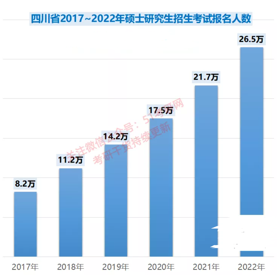 前段时间,四川省公布2022硕士研究生报名人数,全省报名参加硕士研究生招生考试的人数达到26.5万人,较去年增加4万余人,增幅为22%。人数增量创历史新高!