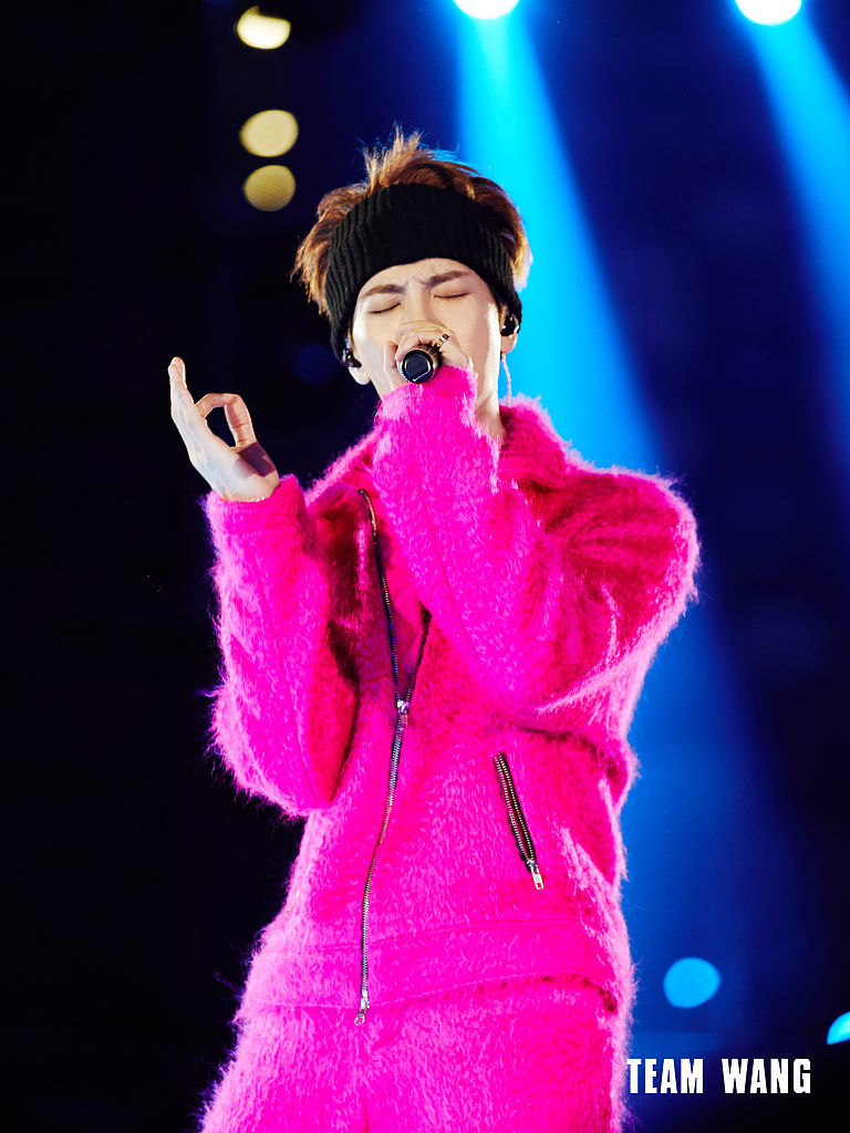 王嘉尔火龙果色造型酷帅满分 戴个性发带嗨爆现场气场全开