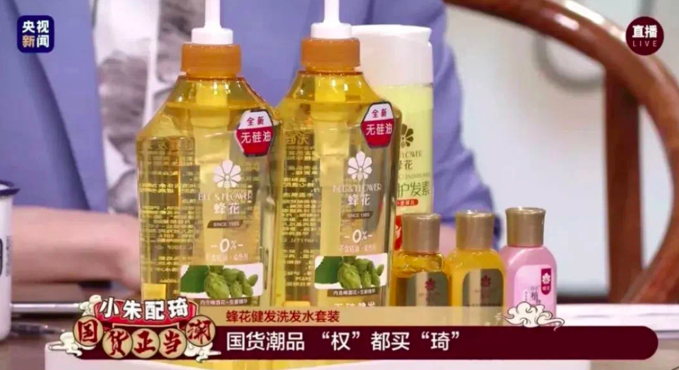 在去年5月10日“中国品牌日”的“小朱配琦”直播中,著名央视主持人朱广权用一段rap献给蜂花等国货美妆:“雪花膏、蛤蜊油,蜂花洗发不发愁!日落不是岁月的过,风起不是树林的错,如果你的品牌被岁月淹没,说明你不是经典国货。蜂花就是我们的经典国货。”