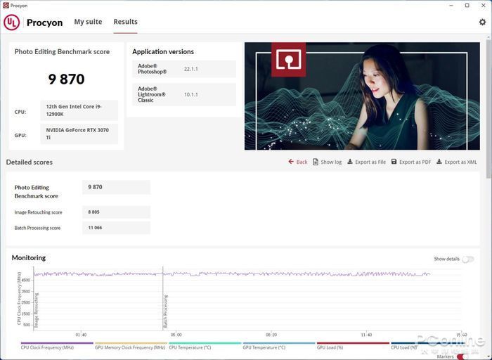 Procyon则Photo Editing和Video Editing两个图片视频处理负载测试。