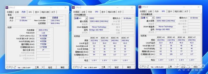 通过CPU-Z软件的监测,我们可以看到在软件能对金泰克 速虎T4 DDR5-4800 16GB内存进行正确的识别。