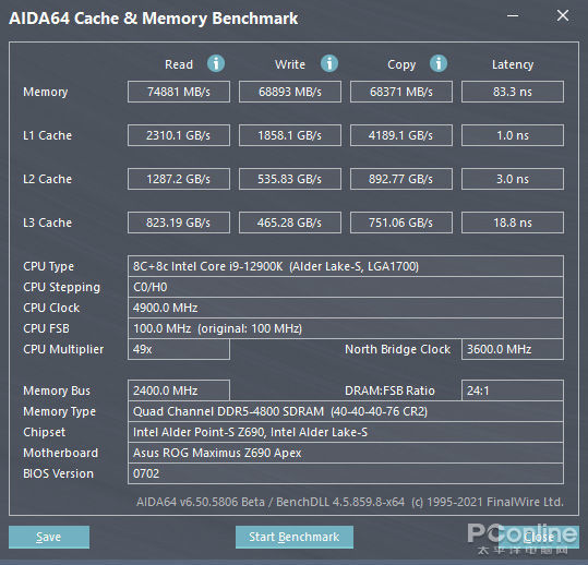 作为初期的DDR5内存新品,金泰克速虎T4 DDR5-4800 16GB内存的频率设定为4800MHz,通过内存测试说明了即使是入门级的DDR5内存也比DDR4有非常明显的性能提升。