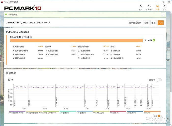 PCmark10选择Extended进行整体的平台负载测试