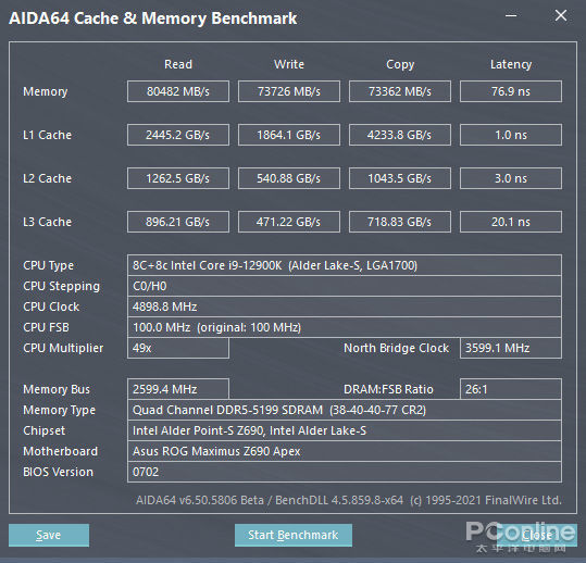 我们将金泰克 速虎T4 DDR5-4800 16GB内存以4800频率工作,以40-40-40-76 CR2时序运行。并在理论性能和游戏两个测试项目中看看内存性能会怎样表现。