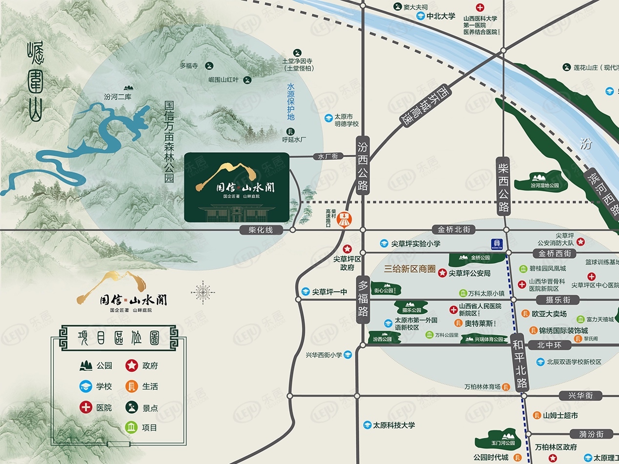国信山水间属于城郊森林北板块,位于太原北部,拥有优良的生态本底和丰富的文化资源。
