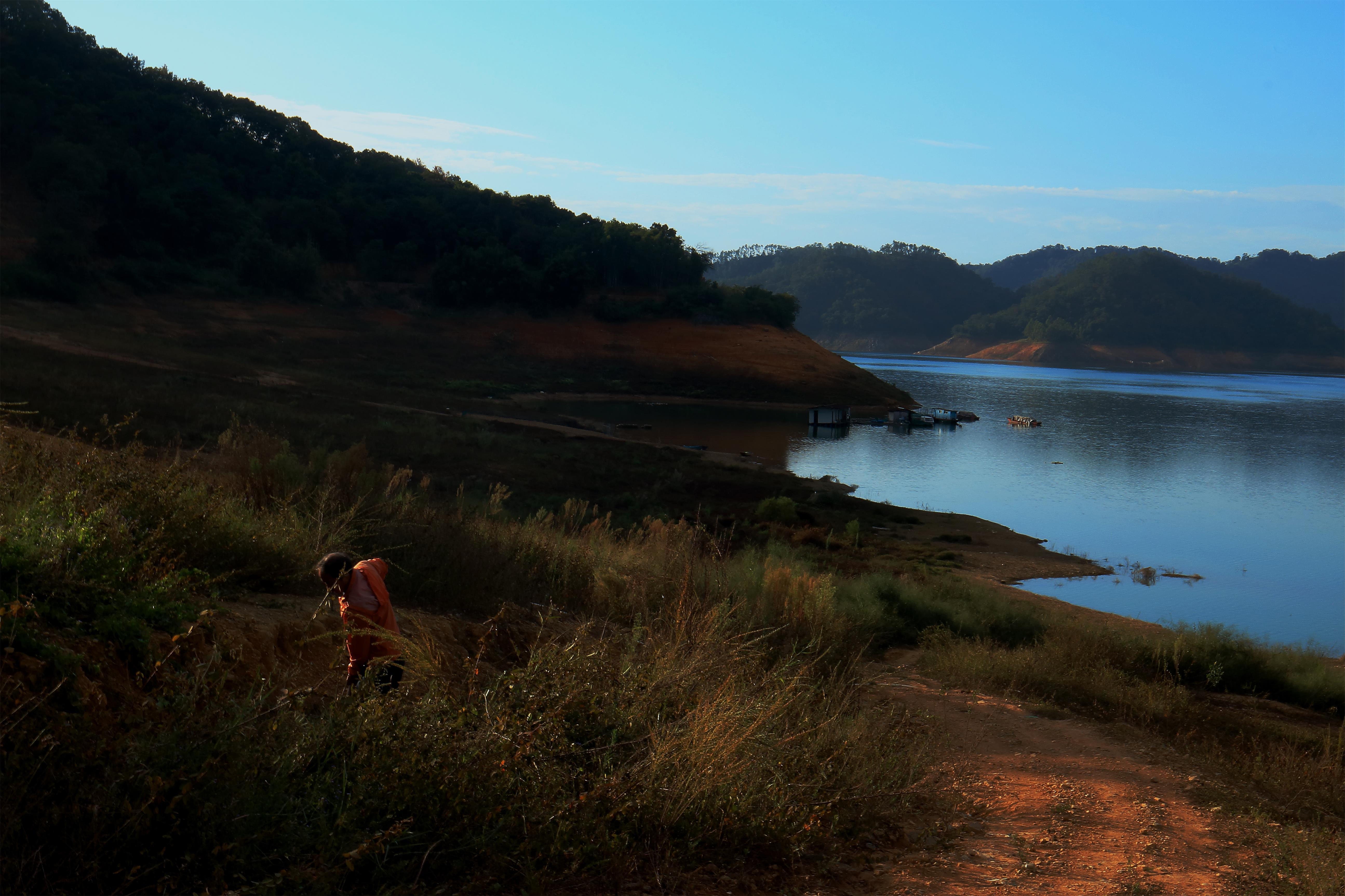 10.00点,多云逐渐散去,有蓝色衫映下万绿湖才有韵味,去年与朋友们10月也来了万绿湖边徒步,从新回龙镇到锡场徒步,走了13个多小时,人多景好当然要自拍的人多,时间也会长,天气虽然晴朗,但灰朦胧不清,也只好调整相机拍摄黑白风格。
