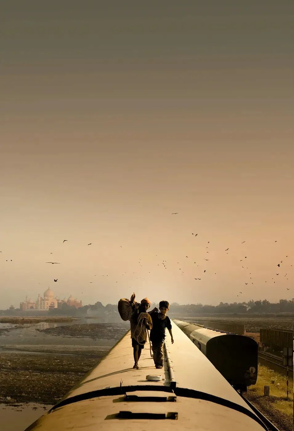 贾马尔和哥哥像两只瘦小的寄生虫,寄生在火车上。