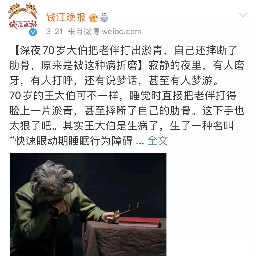 后经医生详细询问、检查、睡眠监测后诊断,老伯患上了快速眼动期睡眠行为障碍。