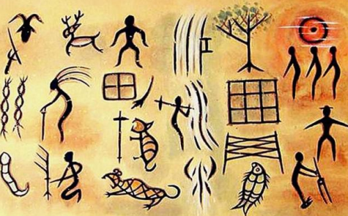 黄帝见仓颉这样能干,叫他管的事情愈来愈多,年年祭祀的次数,回回狩猎的分配,部落人丁的增减,也统统叫仓颉管。仓颉又犯愁了,凭着添绳子、挂贝壳已不抵事了。怎么才能不出差错呢?这天,他参加集体狩猎,走到一个三岔路口时,几个老人为往哪条路走争辩起来。一个老人坚持要往东,说有羚羊;一个老人要往北,说前面不远可以追到鹿群;一个老人偏要往西,说有两只老虎,不及时打死,就会错过了机会。仓颉一问,原来他们都是看着地上野兽的脚印才认定的。仓颉心中猛然一喜:既然一个脚印代表一种野兽,我为什么不能用一种符号来表示我所管的东西呢?他高兴地拔腿奔回家,开始创造各种符号来表示事物。果然,把事情管理得头头是道。