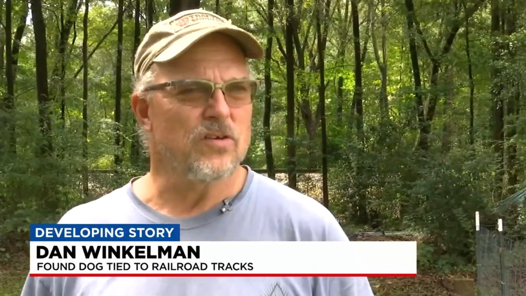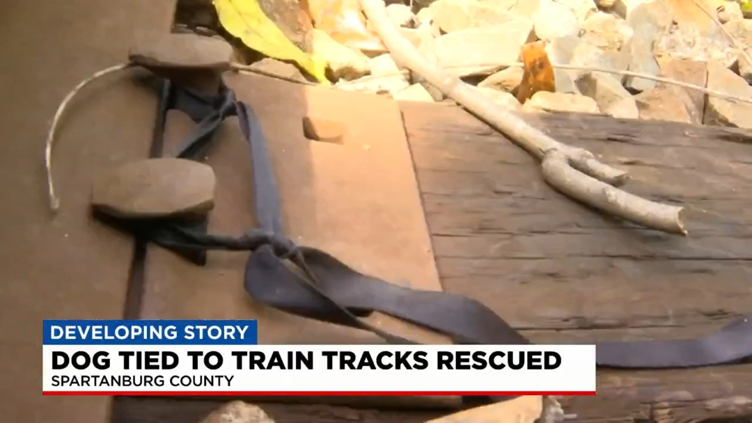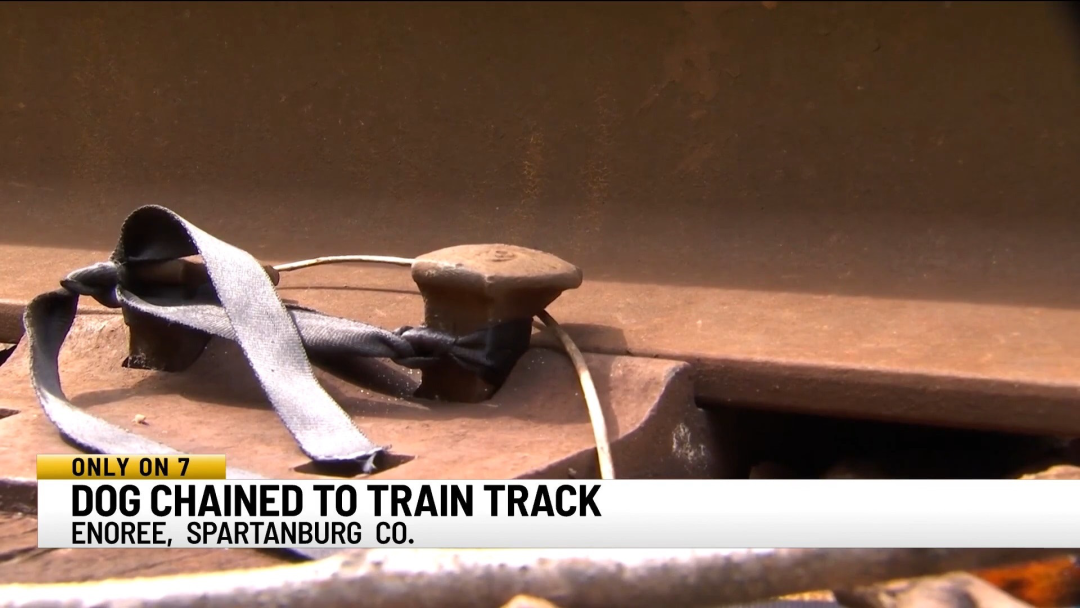 它被人拴在了火车轨道上!